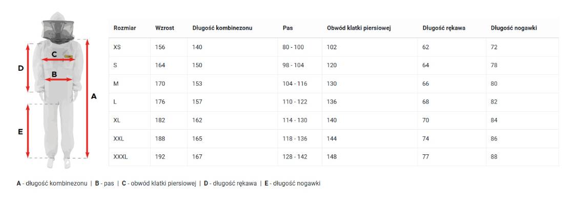 Kombinezon pszczelarski z łatwością można ubrać i zdjąć dzięki zamkowi błyskawicznemu z przodu, który ułatwia dostęp do ubrania. Dzięki ściągaczom przy rękawach i nogawkach oraz gumkom w pasie, kombinezon idealnie przylega do ciała, co zapobiega dostawaniu się pszczół pod ubranie, co jest niezwykle istotne dla bezpieczeństwa pszczelarza.