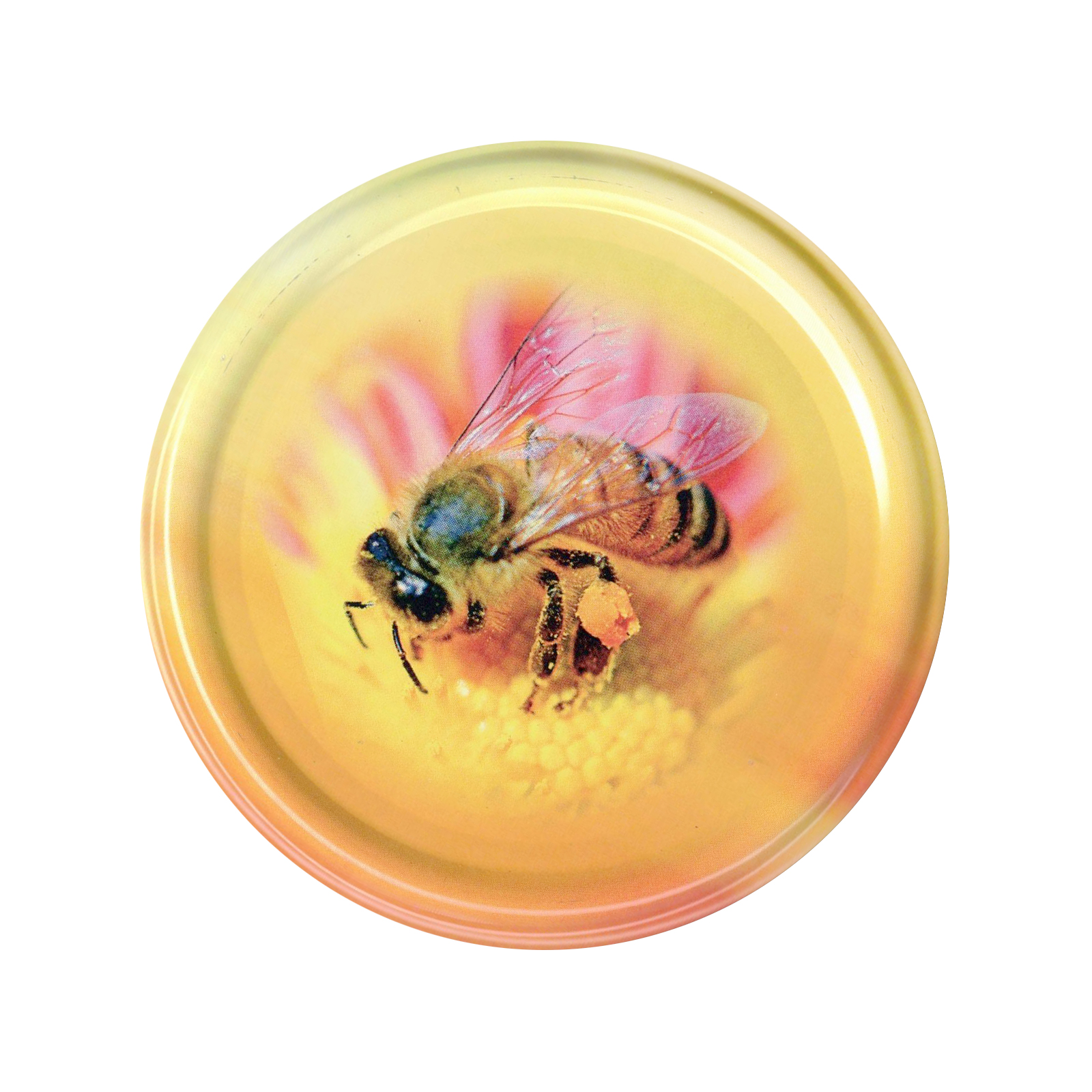 Paczka DUŻYCH nakrętek na słoiki z miodem (50szt) ŻÓŁTE Z PSZCZOŁĄ - wzór ND85
